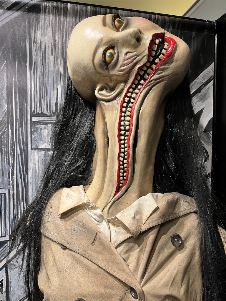 今回の展示の中で、撮影スポットとしてもとてと人気なこちらの口裂け女。